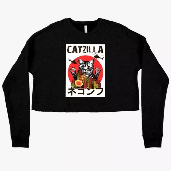 Women’s Cropped Fleece Catzilla Sweatshirt – Japanese Vintage Sweatshirt