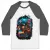 features raglan 3/4 sleeves and a modern fit that is perfect for a day
