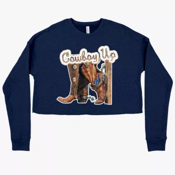 Women’s Cropped Fleece Cowboy Up Sweatshirt – Vintage Sweatshirts