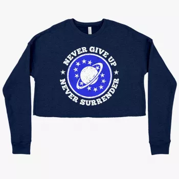 Women’s Cropped Fleece Never Give Up Sweatshirt – Galaxy Quest Sweatshirt – Galaxy Quest Apparel