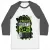 features raglan 3/4 sleeves and a modern fit that is perfect for a day
