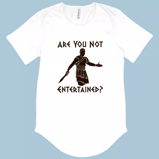 Men’s Are You Not Entertained T-Shirt with Curved Hem – Gladiator T-Shirt – Movies T-Shirt
