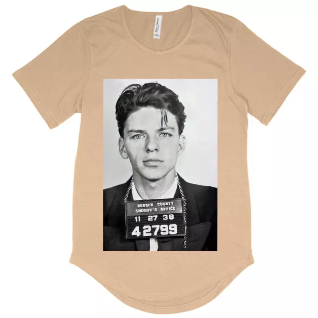 Men’s Frank Sinatra Mugshot T-Shirt with Curved Hem – Printed T-Shirt