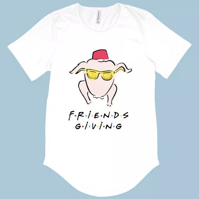 Men’s Friendsgiving T-Shirt with Curved Hem – Thanksgiving T-Shirts