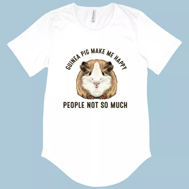 Men’s Guinea Pig Make me Happy T-Shirt with Curved Hem – Guinea T-Shirt – Funny Animal T-Shirt