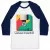 features raglan 3/4 sleeves and a modern fit that is perfect for a day