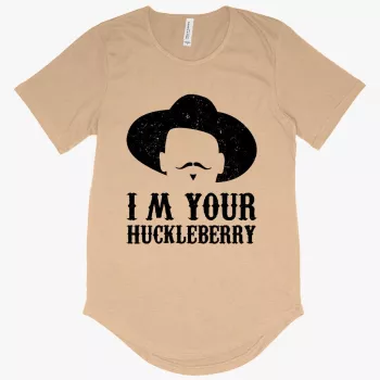 Men’s I’m Your Huckleberry T-Shirt with Curved Hem – Vintage Cowboy T-Shirt