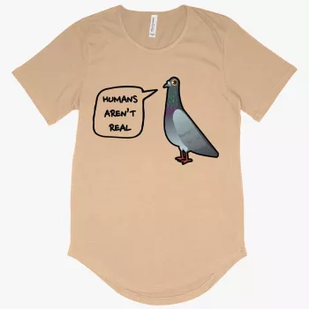 Men’s Humans Aren’t Real T-Shirt with Curved Hem – Pigeon T-Shirt