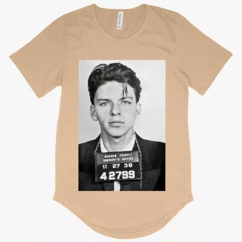Men’s Frank Sinatra Mugshot T-Shirt with Curved Hem – Printed T-Shirt
