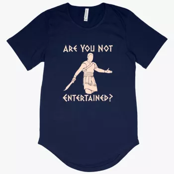 Men’s Are You Not Entertained T-Shirt with Curved Hem – Gladiator T-Shirt – Movies T-Shirt