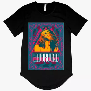 Men’s Hawkwind T-Shirt with Curved Hem – Vintage Hawkwind Band T-Shirts