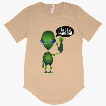 Men’s Hello Human T-Shirt with Curved Hem – Alien T-Shirt