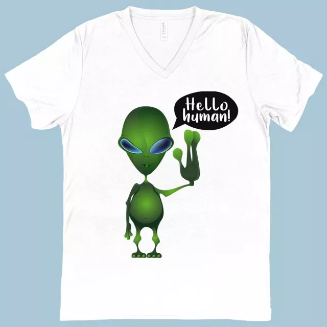 V-Neck Hello Human T-Shirt – Alien T-Shirt