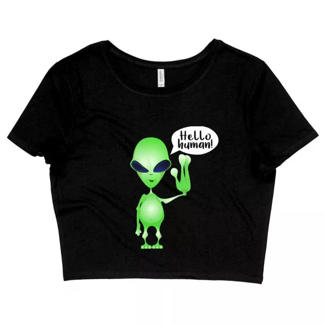 Women’s Cropped Hello Human T-Shirt – Alien T-Shirt